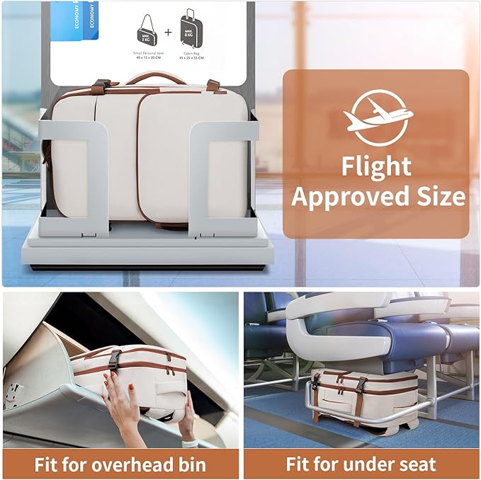 ZOMFELT Travel Backpack for Women Men, Carry On Backpack, TSA 15.6inch Laptop Backpack Flight Approved, Personal Item Travel Bag Nurse Bag Casual Daypack for Weekender Business Trip, Khaki White