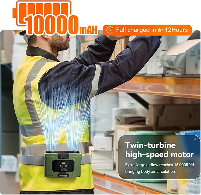 10000mAh Personal Waist Fan, USB Rechargeable Clip The Waist For Working,10 Speed & 40H Cooling and Heatstroke Prevention For Outdoor Travel Camping (K60-green)