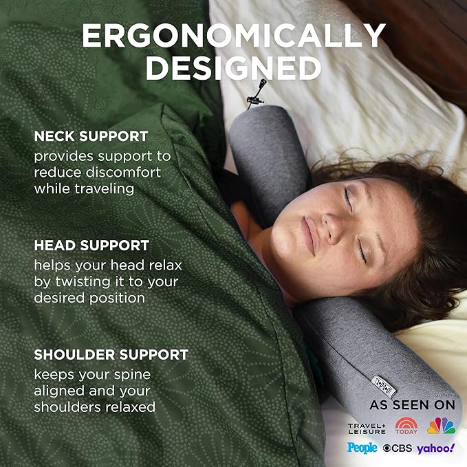 - 𝗣𝗿𝗼𝘃𝗶𝗱𝗲𝘀 𝗖𝘂𝘀𝘁𝗼𝗺 𝗦𝘂𝗽𝗽𝗼𝗿𝘁 - Unlike most traditional neck travel pillows for airplanes, our twistable travel pillows contour to almost any shape and position you want to provide you personalized support and pain relief.