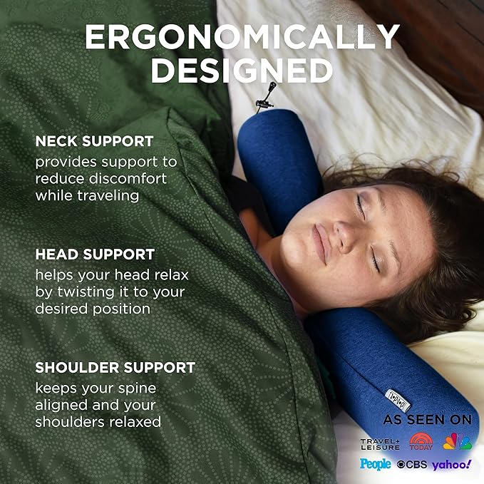 Dot&Dot Twist Memory Foam Travel Pillow for Airplanes - Travel Neck Pillow for Sleeping - Airplane Pillow for Neck Support - Adjustable, Bendable Neck Roll Pillow
