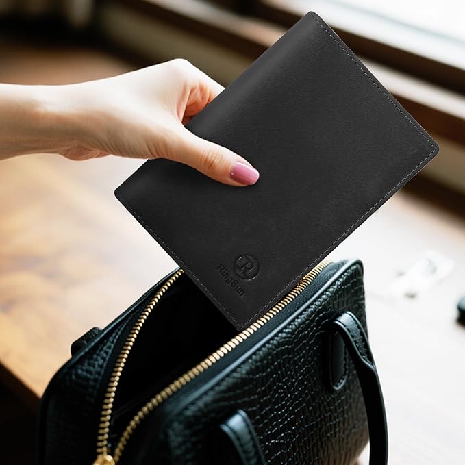 Ringsun Leather Passport Cover for Men Women, RFID Passport Wallet Case Travel Passport Holder for Family