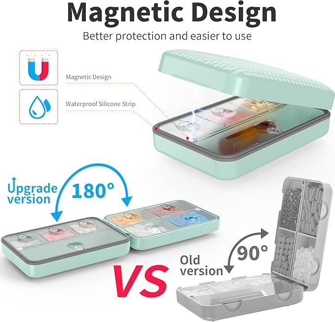 - ✅【Waterproof & Airtight Seal】- waterproof pill organizer - The built-in silicone ring offers reliable moisture-proof and airtight storage, ideal for travel or humid climates to keep medications fresh and secure.