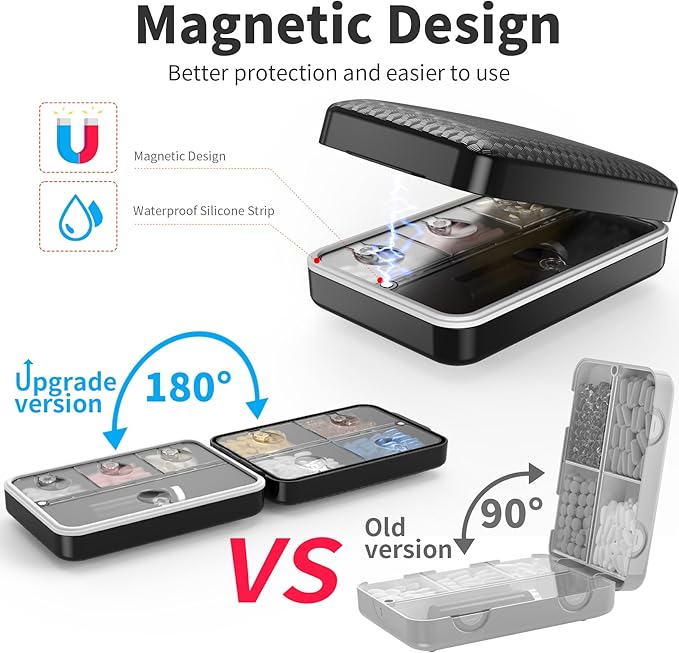 - ✅【Waterproof & Airtight Seal】- waterproof pill organizer - The built-in silicone ring offers reliable moisture-proof and airtight storage, ideal for travel or humid climates to keep medications fresh and secure.