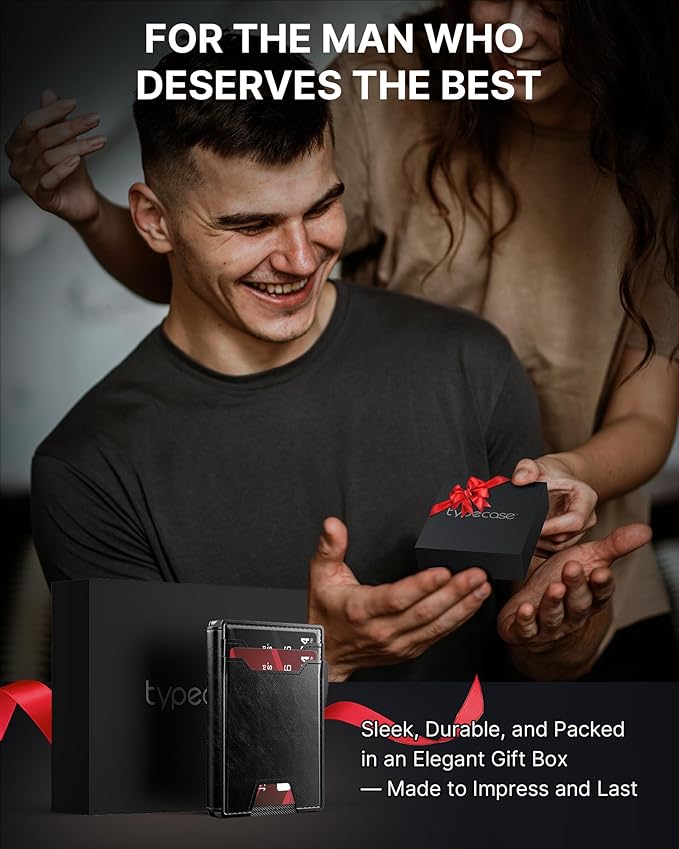 typecase Wallet for Men: Rfid Blocking Wallet 9-13 Card Capacity with Money Clip Slim Leather Front Pocket Smart Pop Up Card Case Bifold Minimalist Wallet with Gift Box - Atlanta Black