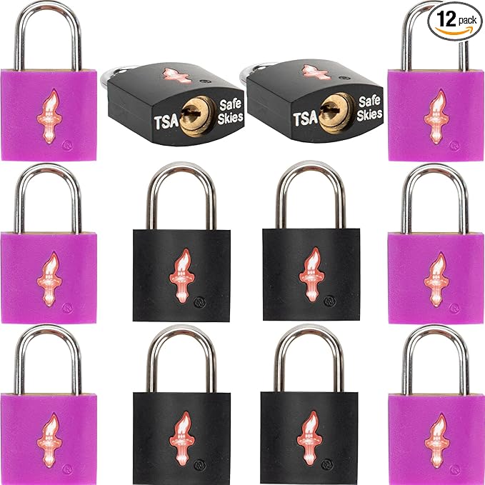 12 Pack TSA Travel Lock,TSA Luggage Lock for Suitcases, Gun Cases & Travel Bags - Solid Brass Security Lock with Color Shell (12 Colors: Black/Juice)