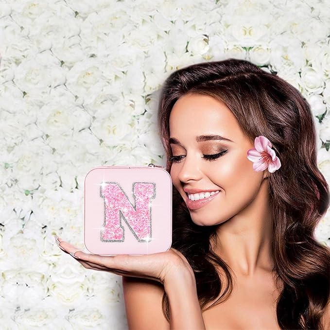 Personalized Jewelry Case for Women Girls - Fashion Mini Jewelry Boxes - Trendy Travel Jewelry Organizer with Initials Letter - Teen Gifts | Pink,N