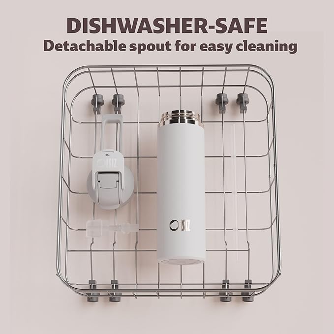 - 100% LEAK PROOF & DISHWASHER SAFE: The tight sealed lid ensures 100% leakproof, put this insulated thermos in your backpack without worry. Cap, cup and straw are all dishwasher safe for easy cleaning. With wide-mouth and detachable spout design, it is also convenient for hand wash.