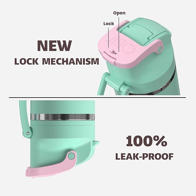 - 100% LEAK PROOF & DISHWASHER SAFE: The tight sealed lid ensures 100% leakproof, put this insulated thermos in your backpack without worry. Cap, cup and straw are all dishwasher safe for easy cleaning. With wide-mouth and detachable spout design, it is also convenient for hand wash.