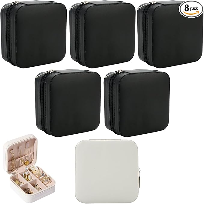 Bridesmaid Proposal Gifts Travel Jewelry Case Jewelry Travel Organizer Small Bachelorette party Jewelry Box Bridesmaid Gift Boxes Mini Storage Organizer Storage Box (8, White&Black)