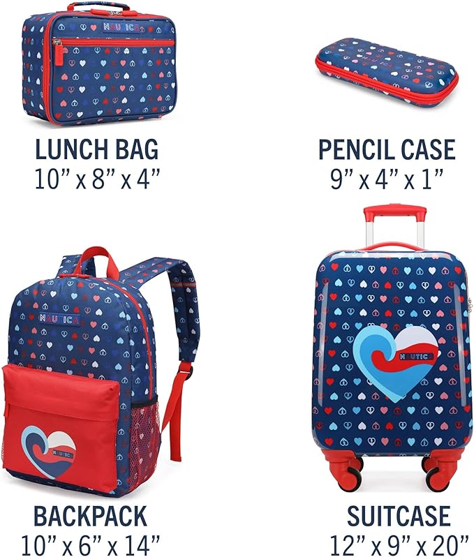 Nautica Kids Luggage - 18" Airline Approved Rolling Hardside Upright Carry-on Suitcase Set with Wheels (Nautica Peace | 5pc School Set)