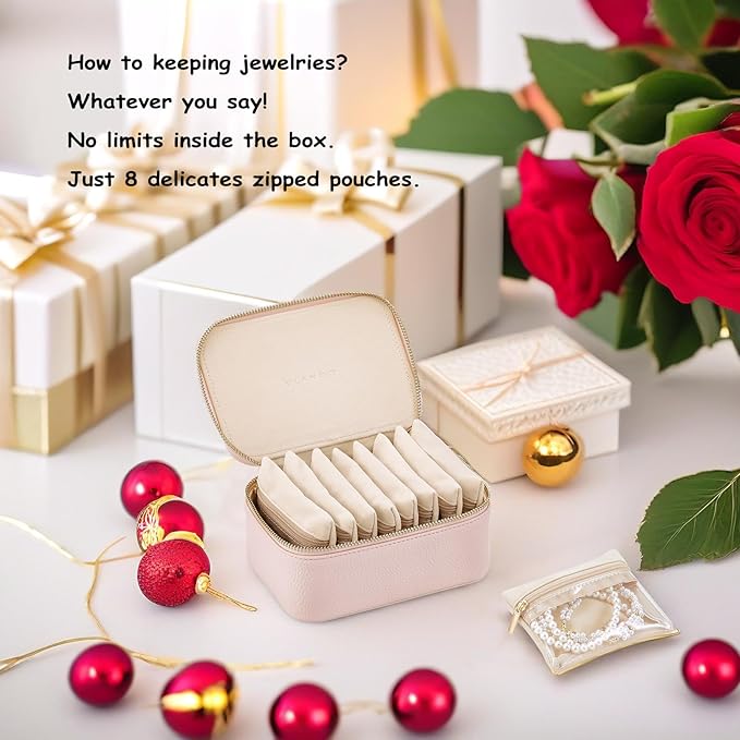 - How to keeping jewelries? Whatever you say! No limits inside the box. Just 8 delicates zipped pouches to keep all kinds of jewelries like earrings, rings, necklaces and so on