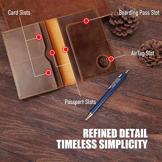 STAR VISTA Albatross Leather Travel Passport Holder, Minimalist Design, Full Grain Leather Case for Men and Women - Slim Passport Wallet, Bifold, RFID Blocking, with AirTag Holder