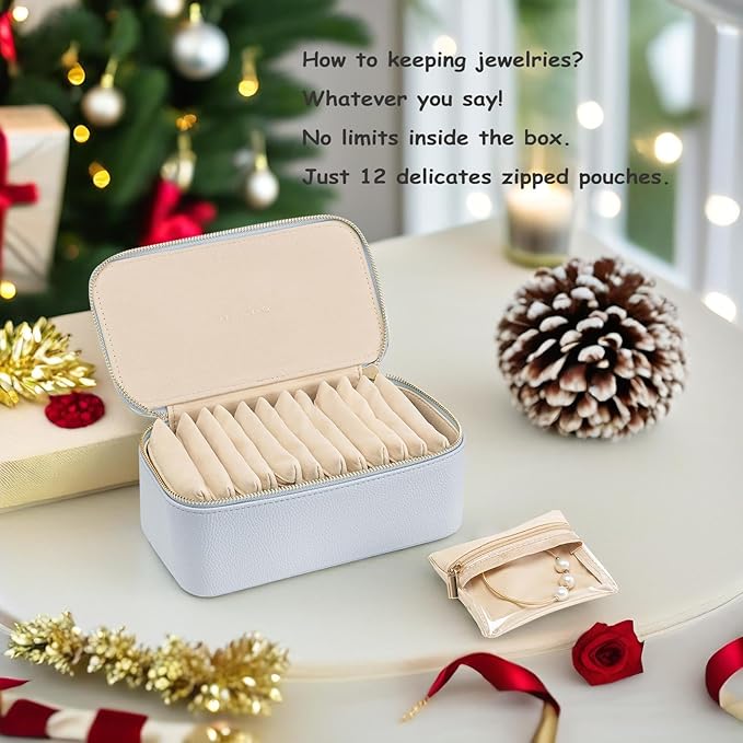 - How to keeping jewelries? Whatever you say! No limits inside the box. Just 12 delicates zipped pouches to keep all kinds of jewelries like earrings, rings, necklaces and so on