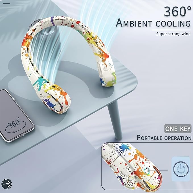 - [Fashionable Design] This hands-free fan can free your hands, the stylish style makes you look cool and you can take it with you in hot weather.