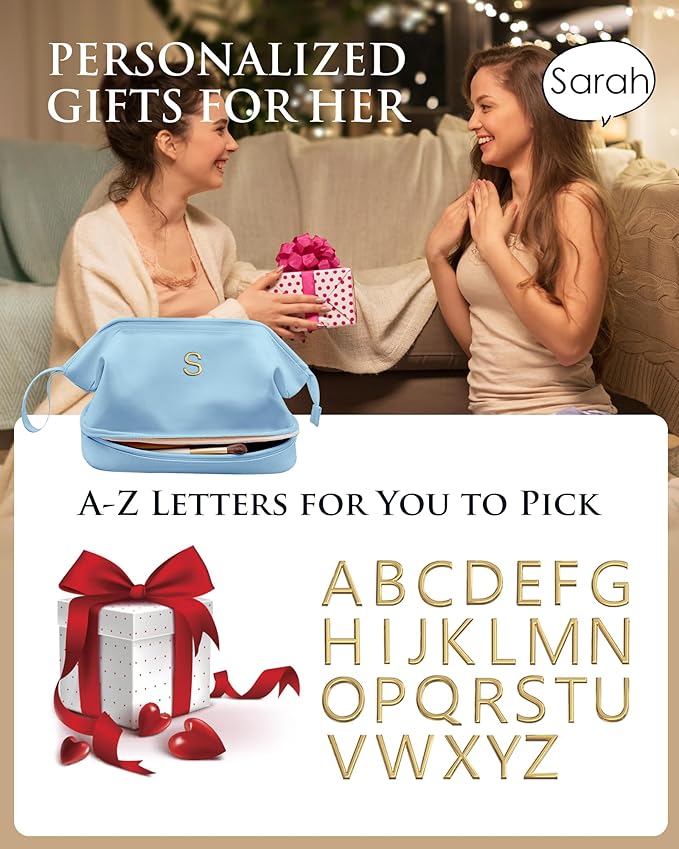 Travel Essentials for Friends Female Mom, Personalized Makeup Bag, Double Layer Cosmetic Bag with Makeup Brush Organizer, Waterproof, Large Capacity PU Leather Toiletry Bag Customized Gifts