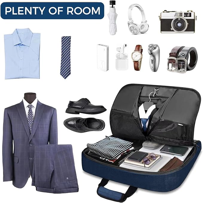 • KEEP CLOTHES CLEAN AND UNWRINKLED: Carry on garment bags with 3 loop holders easily hanging 3 full suits, 3 interior ties down straps and middle foam padded strap keep your suit tidy and free of wrinkles. Carrying the business travel garment bags, reduce preparation time, have more fun with your business trip, week trip, wedding trip.