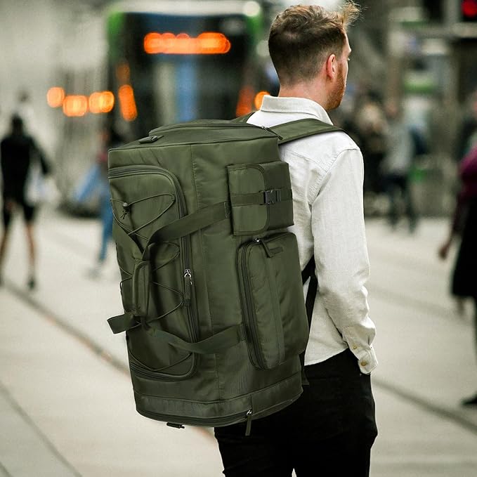 - 【Duffel Bag & Backpack】Lyweem duffle bag for men can be used as a backpack. It is designed with adjustable padded backpack straps and a sternum strap to keep you comfortable even when carrying heavy loads. The backpack straps can be completely hidden, allowing you to easily switch between holdall bag, crossbody and backpack.