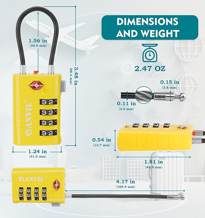 - ★ Easy-to-Set Personal Combination: The ANVIL Luggage Lock is designed for ease of use, featuring an easy-to-read dial for quick and accurate combination setup. As one of the top TSA-approved suitcase locks, it ensures no errors while setting your personal code.