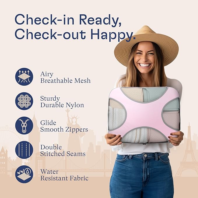 - KEEP CLOTHES WRINKLE-FREE & FRESH: Say goodbye to wrinkled shirts and crumpled outfits as these packing bags for travel neatly compress and secure your clothes. The high-quality fabric keeps them protected, allowing you to unpack in pristine condition. Enjoy the confidence of maintaining a polished look throughout your journey, whether for business or leisure, ensuring every day you look and feel your best.