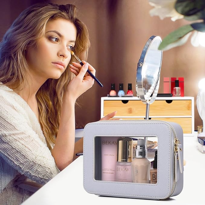 - [Clear makeup bag]: This clear cosmetic bag features a medium size (8.07" * 5.9" * 2.75"), providing ample space for all your cosmetics and toiletry items. It is ideal for travel, fitting perfectly in your carry-on or suitcase.