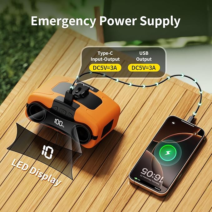 - 【Long Lasting Working Time】Built-in 20000mAh rechargeable battery, which can be run continuously for up to 40 hours at low speed according to the air speed mode, and takes 7-8 hours to to fully charge. This portable waist clip fan can be used when it's during charging. Built-in 5V-3A type C input and 5V-3A USB output, Which is convenient for charging the cordless fan, and it provides long-lasting cooling wherever you need it