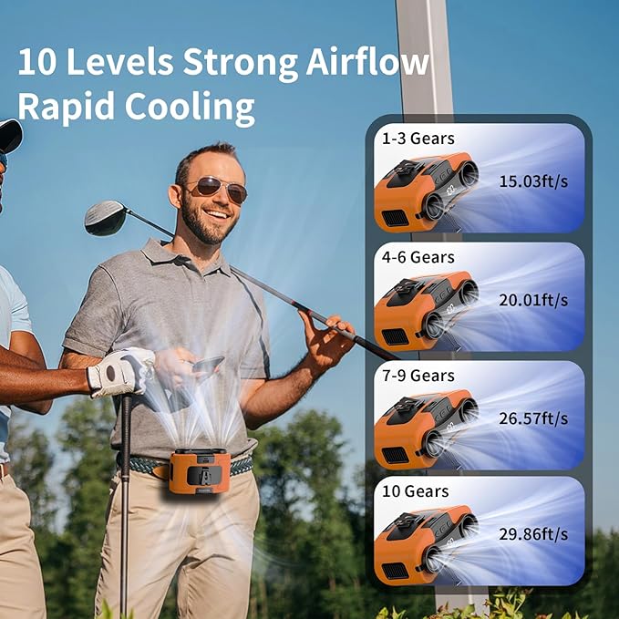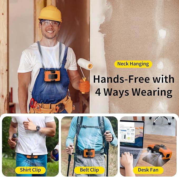 - 【With Silicone Cover, Non-Slip and Anti-Drop】Our mini portable waist clip fan is designed for various outdoor usage scenarios, catering to occupations like workers and farmers. It comes with a high-quality protective silicone leather case which protects from shock when dropped and ensures the body fan is not damaged at all. The upgraded Manganese steel clamp provides stronger gripping force, always keeping the wearable fan firmly, and is more durable