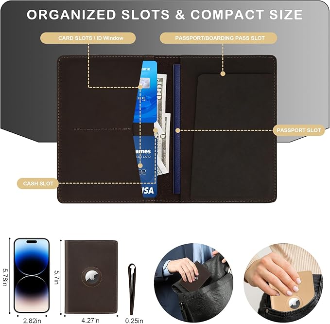 - ADD EXTRA CONVENIENCE: NOTE - "Classic Style" doesn't come with an Airtag slot. "For Airtag Style" comes with a built-in Airtag slot (AirTag not included), making it easy for you to find your passport anywhere. Carrying this airtag passport holder, you won't need to purchase an additional Airtag protective case, saving you money and space in your bag