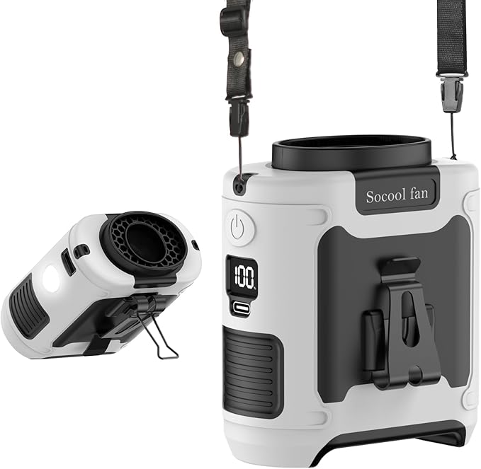 Socool 10000mAh Portable Waist Fan Clip on Wearable Belt Personal Fan Rechargeable Battery operated With 5 Speeds & Flashlight Neck Fan Hands-Free 40H Cooling For Outdoor Camping Travel (White)