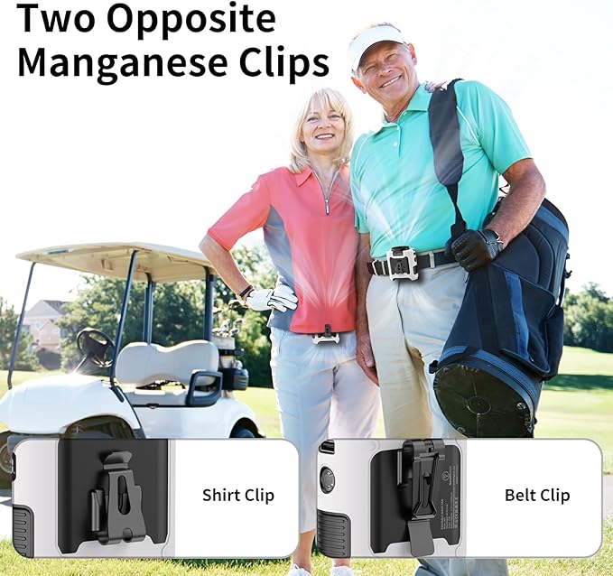 - 【With Silicone Cover, Non-Slip and Anti-Drop】Our mini portable waist fan is designed for various outdoor usage scenarios, catering to occupations like workers and farmers. It comes with a high-quality protective silicone leather case which protects from shock when dropped and ensures the body fan is not damaged at all. The upgraded Manganese steel clamp provides stronger gripping force, always keeping the wearable fan firmly, and is more durable. Practical design with two clips facing opposite directions allows for more placement options