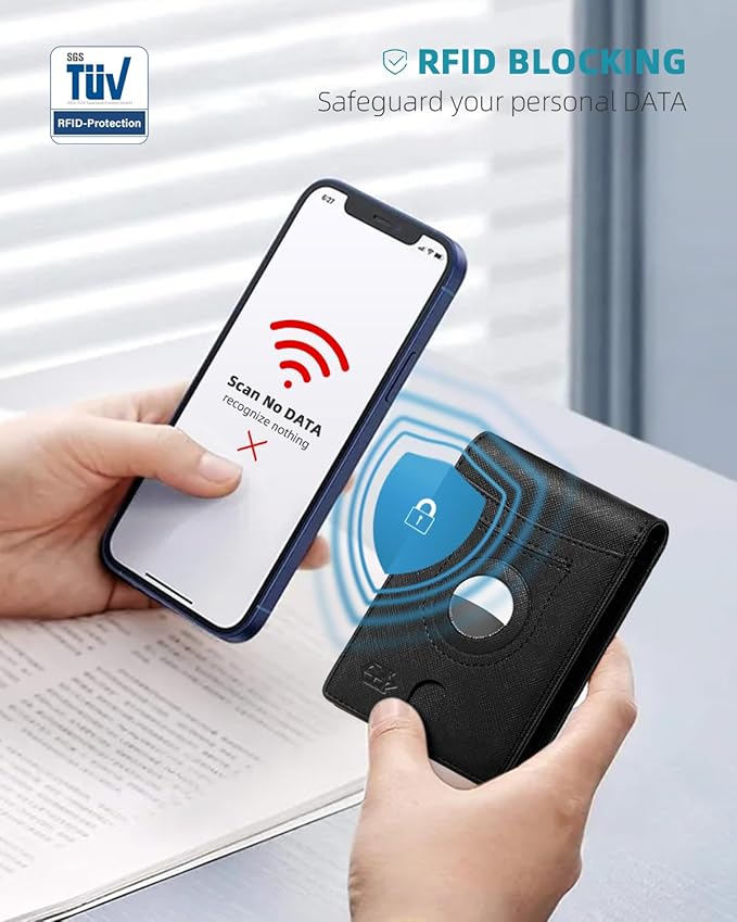 - Rfid Blocking Wallet- This wallet for AirTag boasts RFID blocking shield technology, safeguarding your personal and financial data against unauthorized scanning and identity theft. Enjoy peace of mind knowing that your information is safe and secure