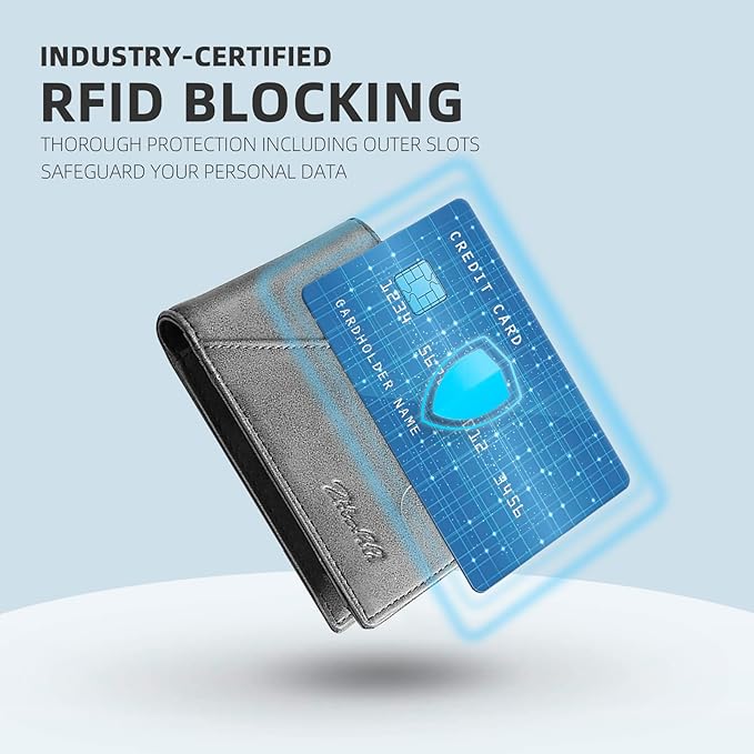 - Advanced RFID BLOCKING Protection - Military-grade shielding effectively blocks 13.56 MHz frequency scanners, thereby safeguarding credit cards and IDs against digital theft