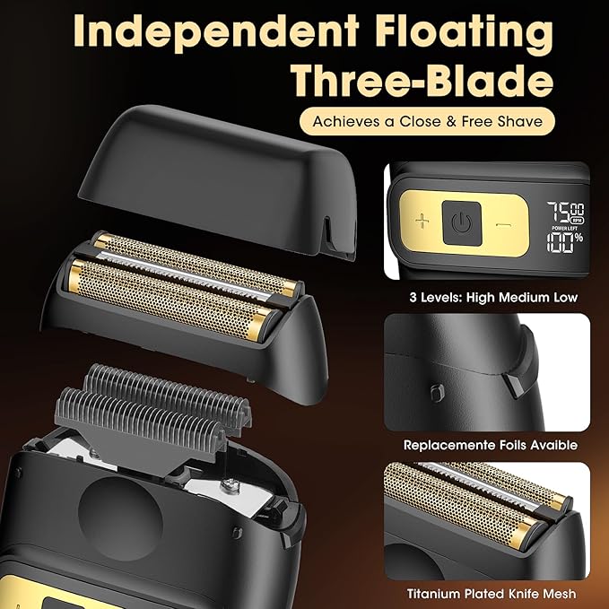 - FOR HOME AND PROFESSIONAL HAIRCUTS- The rechargeable cordless clippers and trimmer set makes it easy for hair cutting,electric triple foil shavers, 3 in 1 mens grooming set is ideal for barbershop professionals and home haircuts.Besides,you can give it as a gift for him