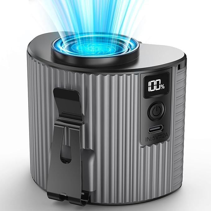 Portable Mini Waist Fan, Personal Waist Clip Fan With Max 20H Working Time, 5 Speeds 11000RPM Strong Airflow, Rechargeable Hands-free Wearable Belt Fan for Outdoor Jobsite Camping Traveling Fishing