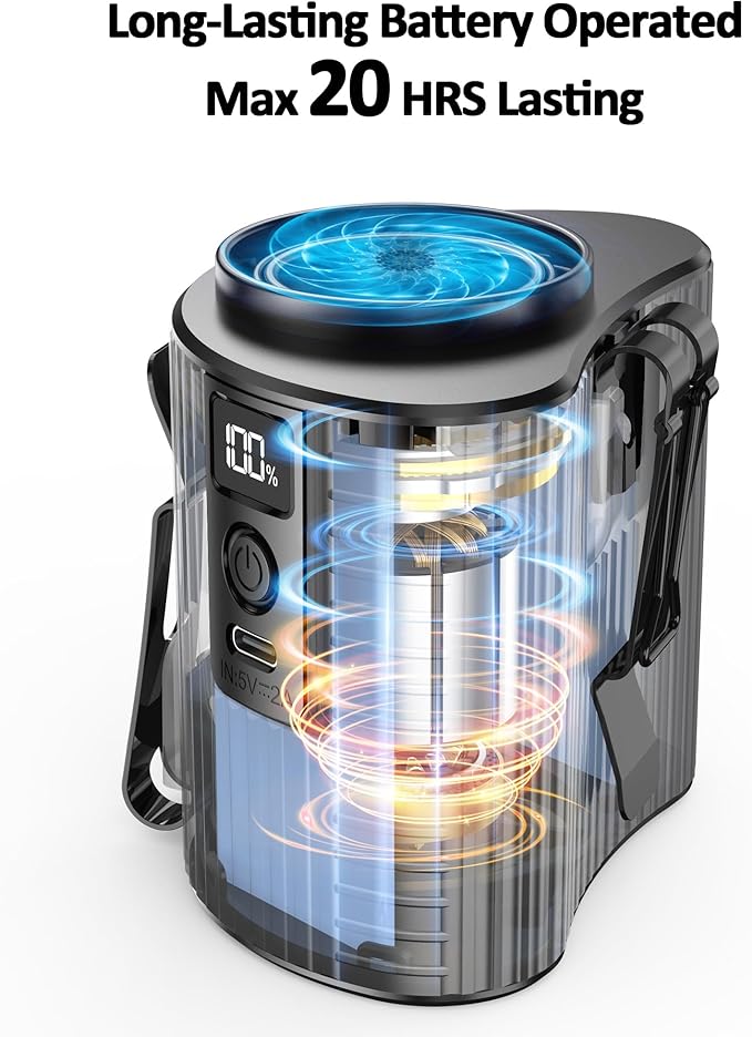 - 【Long-Lasting Working Time】A fully charged 4000mAh battery provides up to 20 hours of continuous airflow to keep you cool for days; fully charges in just 2 hours so you are always ready to go