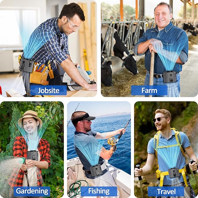- 【Summer Essential】Only 0.5lb, portable and versatile, perfect for outdoor adventures such as fishing, hiking, camping, and also suitable for workers in various environments such as construction, farms and warehouses, keeping comfortable all day; LED digital display shows real-time status, more convenient to use