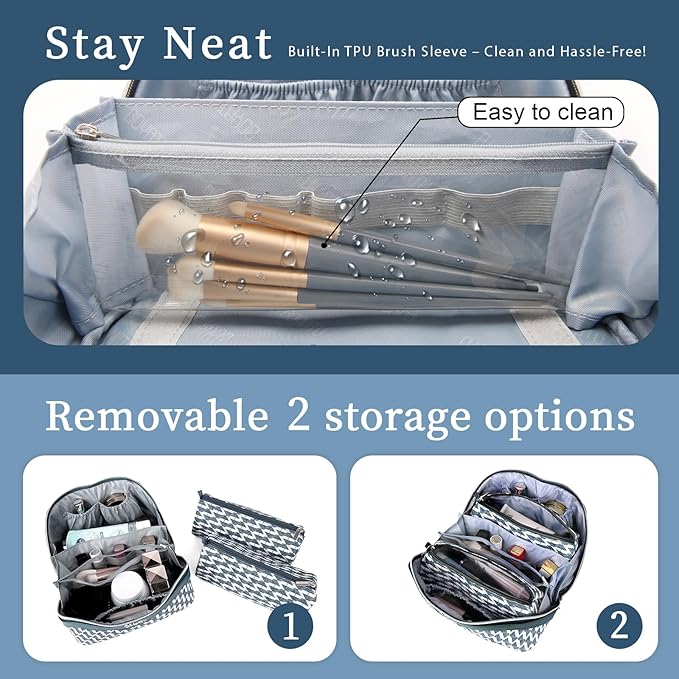 - Waterproof Leather Travel Make up Bags for Women: This makeup travel bag is made of high-quality Vegan leather, soft to the touch, waterproof and easy to clean, not easy to fade. Stain-resistant material stays flawless for years, not months.
