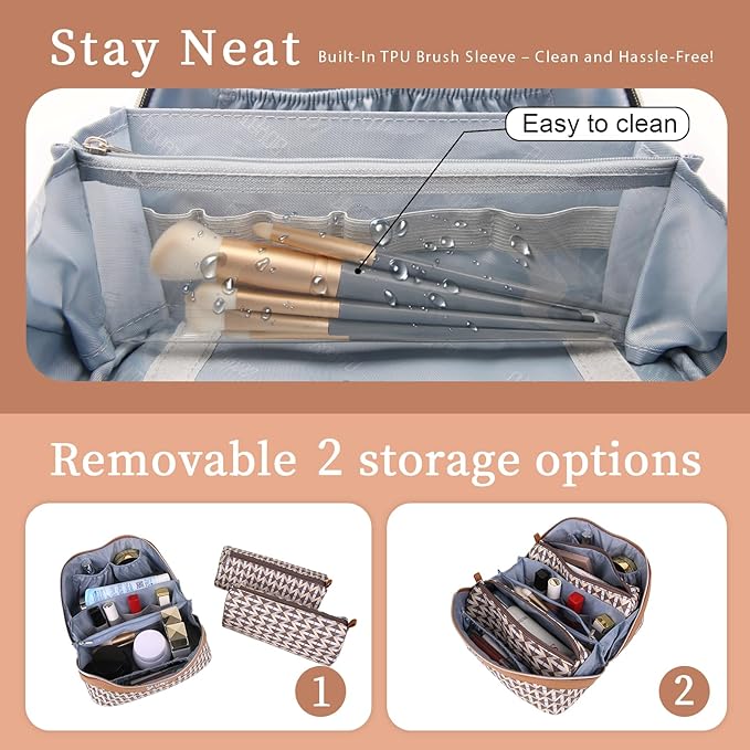 - Waterproof Leather Travel Make up Bags for Women: This makeup travel bag is made of high-quality Vegan leather, soft to the touch, waterproof and easy to clean, not easy to fade. Stain-resistant material stays flawless for years, not months.
