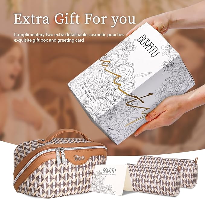 - Travel Gifts for Women: This travel essentials for women comes beautifully packaged in an exquisite gift box, with a thoughtfully designed greeting card. It will be a great travel accessories for women.This makeup organizer bag is a good gift idea on Valentine's Day, Mother's Day, Birthdays, Christmas, and more.