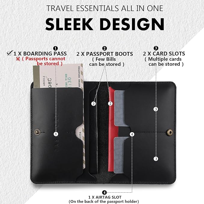 - Surprising Capacity: At 5.9"x4.1"x0.39", this passport holder with Airtag slot features 2 passport + 2 card + 1 ticket slots. The versatile passport wallet holds 2 passports + 4 cards, keeping all travel essentials organized in one compact passport holder airtag.