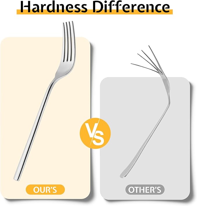 - DESIGN AND APPEARANCE: Mirror finish, natural and elegant design.Smooth and silk surface without grain, easy to clean and care in daily use. Crafted forged process,strong and durable,so that the flatware set has a thicker texture.