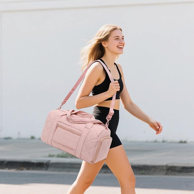 - Adjustable and detachable shoulder straps, metal hooks and plastic shoulder straps ensure a fit and non-slip. Padded and wrapped in the handle for more comfort. Very suitable for dance ,gym, swimming, sports, travel, weekend, overnight, yoga, camping, hiking and many outdoor activities and as gifts for women.