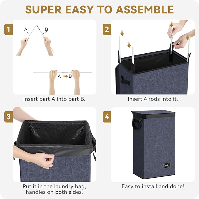 SOLEDI Slim Laundry Hamper with Lid, Narrow Laundry Basket with Removable Bags, Dirty Clothes Hamper with handle, Small Hamper perfect for Laundry room, Bathroom, Bedroom, Small spaces. 70L Navy Blue