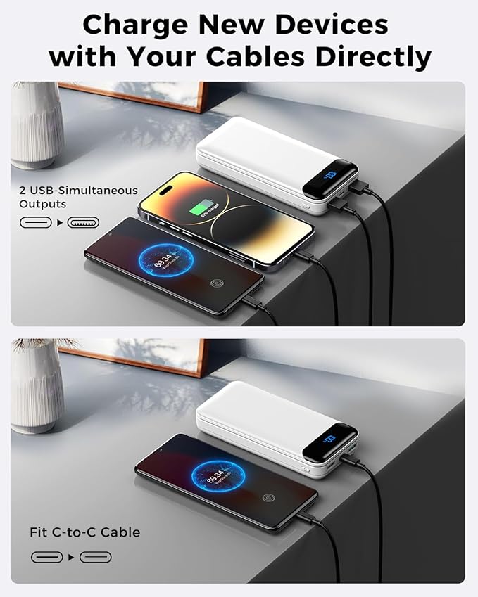 - [3 Outputs & 2 Inputs]: Mobile phone external battery pack is equipped with 1 USB-C interface and 2 USB-A interfaces, and also has an input interface that can charge 3 devices at the same time!