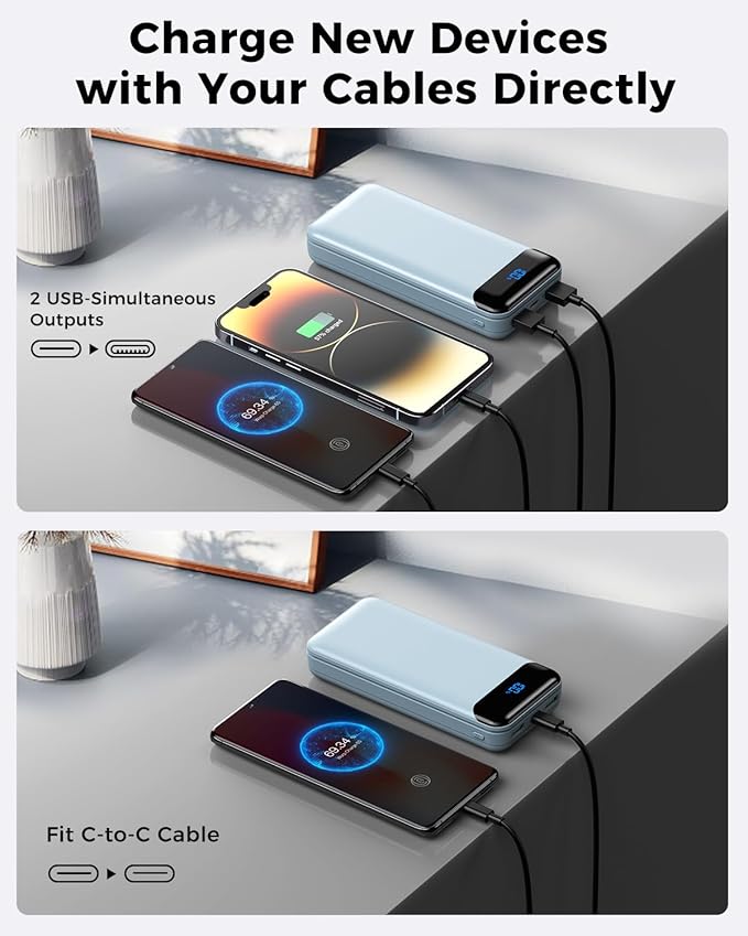 - [3 Outputs & 2 Inputs]: Mobile phone external battery pack is equipped with 1 USB-C interface and 2 USB-A interfaces, and also has an input interface that can charge 3 devices at the same time!
