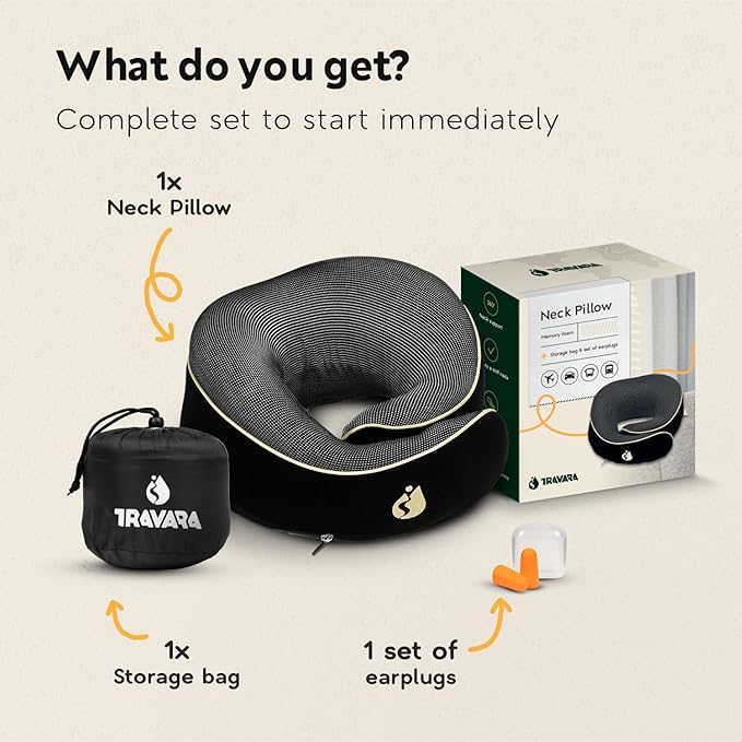 - ON-THE-GO COMFORT: Our TRAVARA travel pillows for airplanes are ultra-portable and compact, fitting snugly into your carry-on or backpack. Equipped with a handy travel pouch, this inflatable pillow is your instant relaxation companion, ready for any adventure.