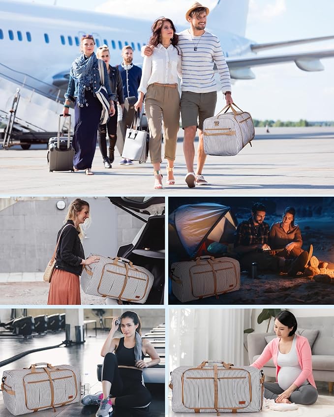 120L Travel Duffle Bag for Men and Women, Large Foldable Duffel Bag for Travel with Shoe Compartment Overnight Weekender Bag Gym Bag Water & Tear Resistant (Stripe, 120L)