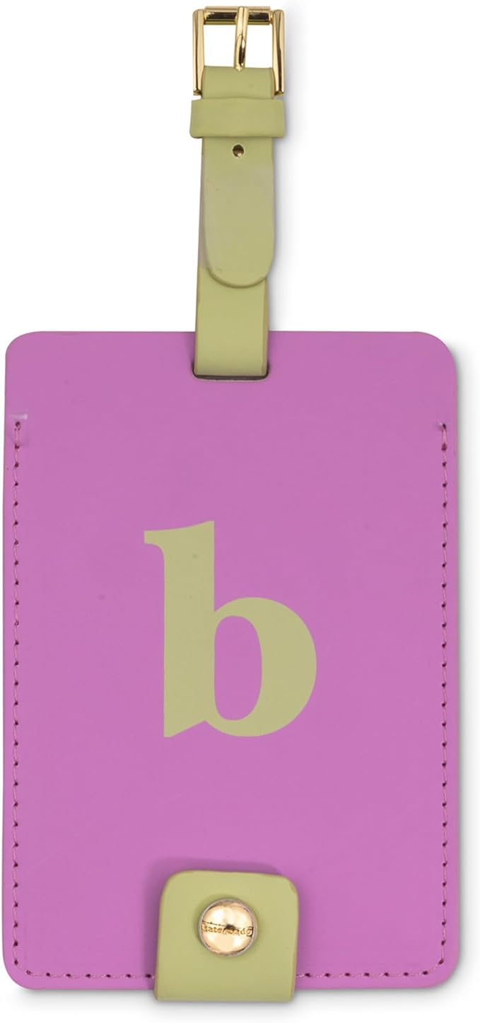 Kate Spade New York Leatherette Luggage Tag with Secure Strap, Colorful Suitcase Identifier for Travel, Monogram Bag Tag ID (B)