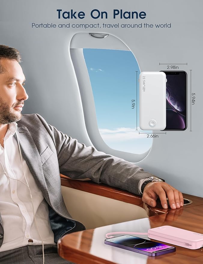 - Special Feature : Potable charger with built in cable and AC wall plug, USB C 20W, USB-A 22.5W fast charging, slim and lightweight, pocket size, camping, hiking, airplane travel necessities, LED indicator lights, over charging protection, short circuit protection, auto shut-off, scratch resistant Potable charger with built in cable and AC wall plug, USB C 20W, USB-A 22.5W fast charging, slim and lightweight, pocket size, camping, hiking, airplane travel necessities, LED indicator lights, over charging protectio… See more