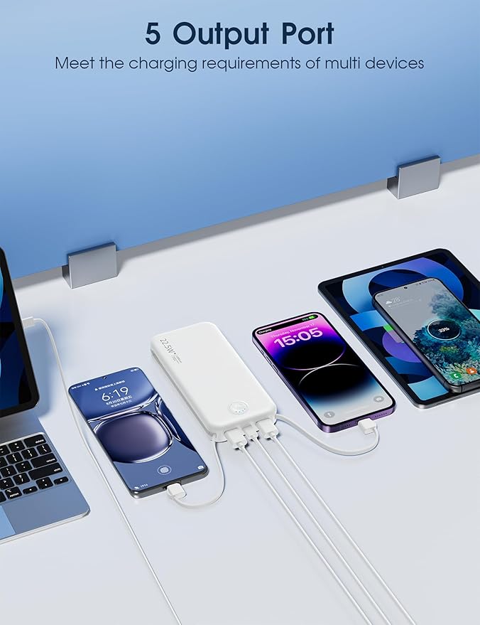- Super Fast Charging: External charger has two USB-A and 1 USB C ports, capable charge 5 devices sync. The USB-A1 give 22.5W high speed delivering, charge for iPhone 12 from 0% to 75% in 30 minutes, USB C refill Google Pixel 6 Pro to 55% within 45 minutes by the 20W power.