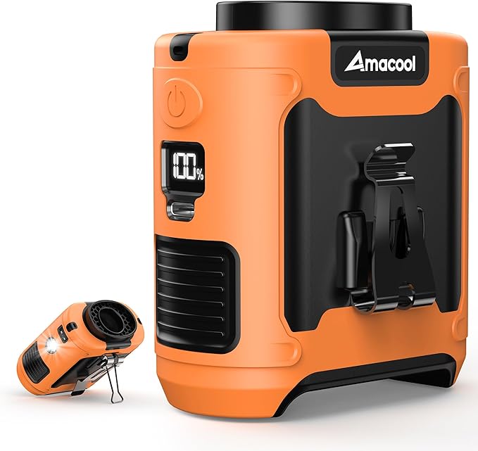 AMACOOL Portable Waist Fan Clip On, MAX 40H Work Time, 10000mAh Rechargeable Wearable Shirt Fan with Light, 16000RPM Powerful 5 Speed Belt Fans Personal Cooling Fans for Outdoor Jobsite Travel